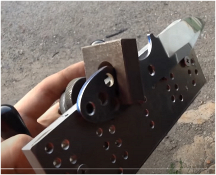 На специализированных форумах сотни страниц посвящены обсуждению этой самой важной сейчас для мастеров-ножеделов теме - вытачиванию спусков на полосе. Люди делятся советами, выкладывают чертежи приспособлений...