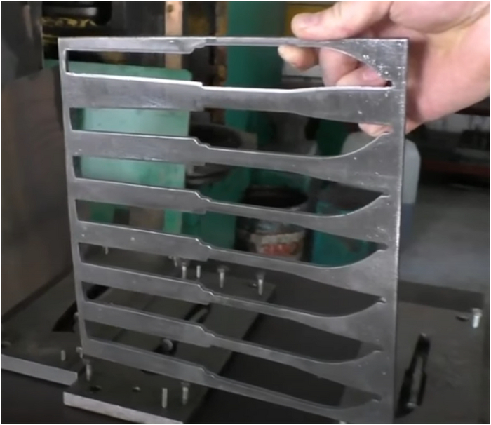 Так вот сейчас на заводе из полосы (или листа) штампом вырубаются заготовки под нож. Секунда – заготовка. Секунда – заготовка.
