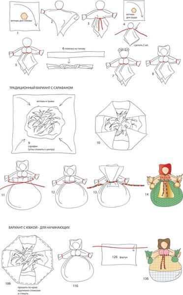 Кубышка-травница, как и многие другие русские народные куклы, относится к типу мотанок. Это значит, что она создается путем скручивания и завязывания нитей, без использования иглы. Такая техника имеет глубокий символический смысл: