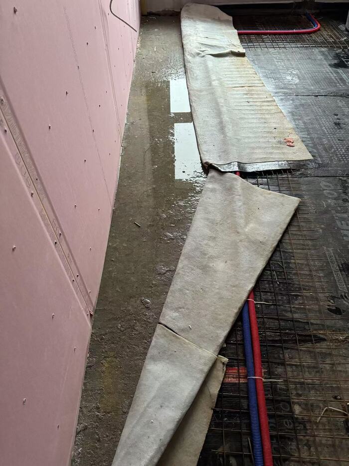 Воды было около 10 см. Фотки в первый день получить не удалось, на второй день уже почти все подсохло и тогда уже прораб мне их прислал.