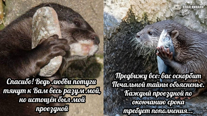 [моё] Картинка с текстом Мемы Животные Выдра Восточная бескоготная выдра Звонок Телефонный звонок Александр Сергеевич Пушкин Евгений Онегин Телефон Разговор Телефонный разговор Пельменная Проездной Рыба Камень Рация Свидание Длиннопост