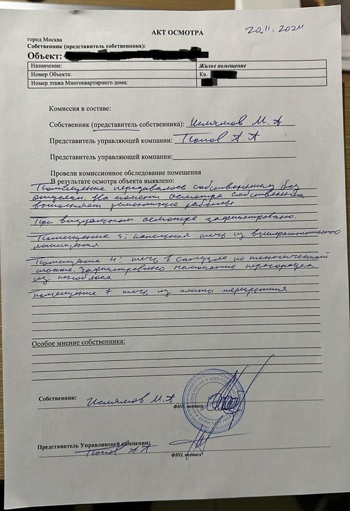 Пруфы, что залив был (акт от УК и несколько фоток, где видно уровень воды):