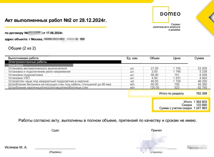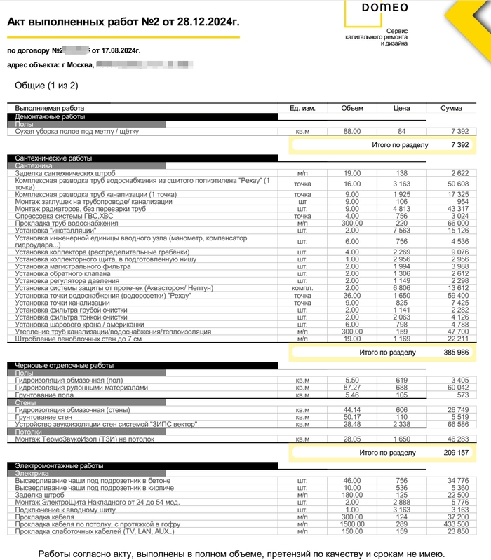 Мой опыт ремонта с Domeo или как они затопили квартиру мне и моим соседям – Часть 2. Пруфы, технадзор, стоимость работ⁠⁠