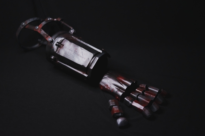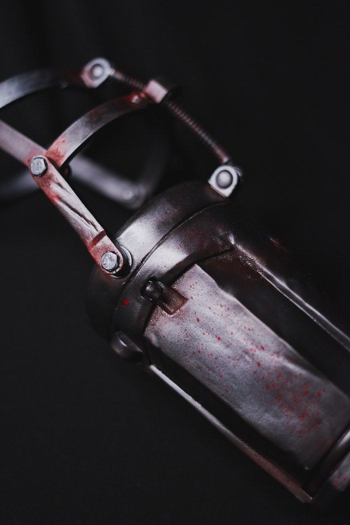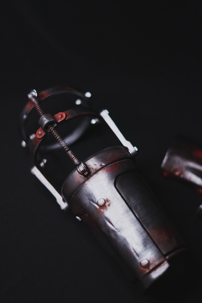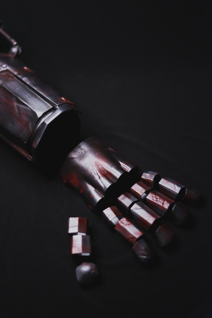 В этот раз очень хорошо проработал побитости и в особенности ржавчину, получилось очень правдоподобно, как по мне Кстати, плечевые детали подвижны и закреплены болтами, всё удобно и надёжно Финальный результат ждём уже от косплеера