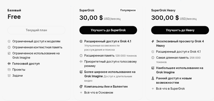 Проверьте, какой тариф указан: Free, SuperGrok или SuperGrok Heavy, чтобы не перепутать уровень доступа.
