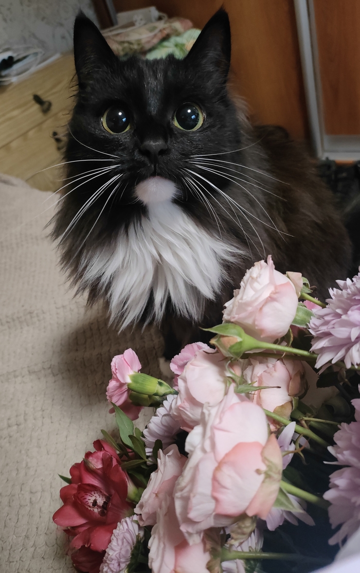Подобрали с улицы. Какая красавица! Ни разу таких не видел, хотя у самого 2 кошки. Одной не стало в конце января, вторая уже очень старенькая, но живёт поживает.