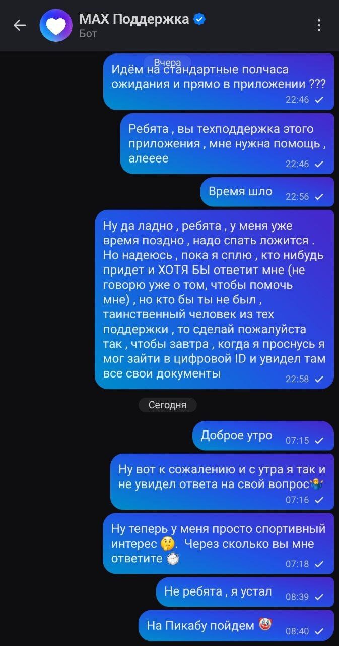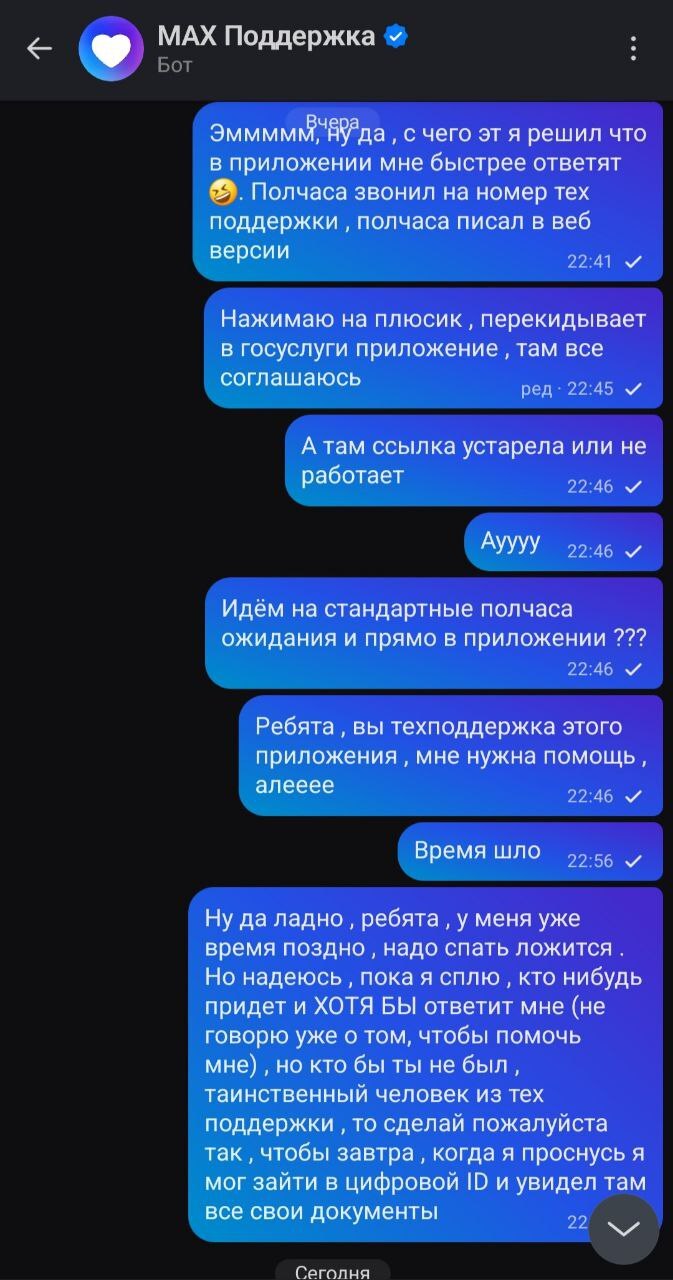 Думаю: ладно, напишу в техподдержку — вы же сами этот сервис по всей стране продвигаете, на каждом углу орёте про этот ID. Раз так — будьте добры, помогите мне его получить.
