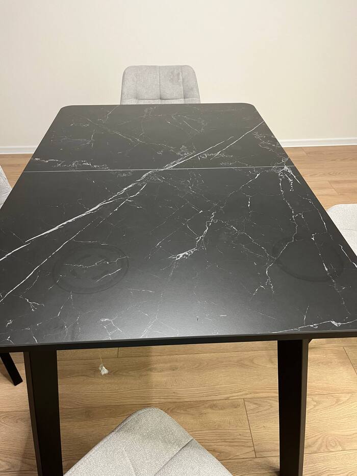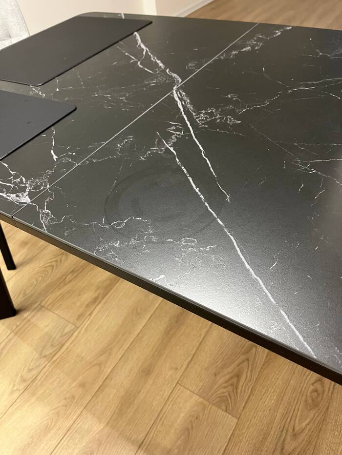 Несмотря на отсутствие заглушки я собрал стол. Поставил его, подложив под ножку без заглушки мягкий материал из упаковки. И вот самый важный нюанс в том, что то ли из-за освещения в том месте, где он встал, то ли из-за того, что я сразу положил на него декоративные коврики, я не понял что с поверхностью что-то не то.