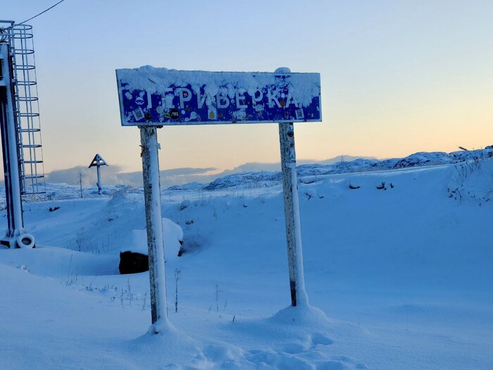 И вот он – заветный въездной знак. Здесь делаем обязательное фото. Два часа в пути и мы в поселке Лодейное, он же – Новая Териберка.