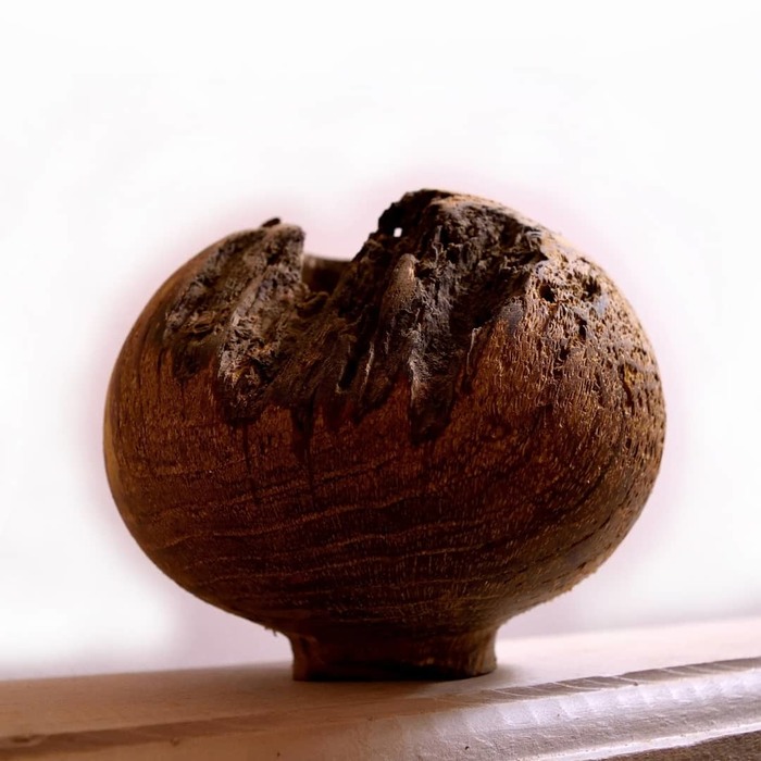 Жил был пенёк из дружного дубового семейства. Многое он пережил. Было у него сверху дерево, которое спилили лесорубы, были солнечные и пасмурные дни, снег, дождь и ветер. Время лепило из него свой творческий шедевр и вот..... В один прекрасный солнечный день попался он мне на глаза, процесс был прерван, пенёк выкорчеван и пущен в токарные эксперименты. Получилась вазочка, симпатичная, милая вазочка. Вот как декор для дома - очень, очень даже.
