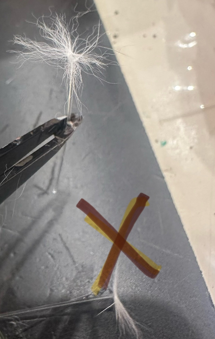 Далее начинаем процесс отбора пушинок. Не все пушинки одинаково полезны и в процессе отбора срезается примерно 1/5