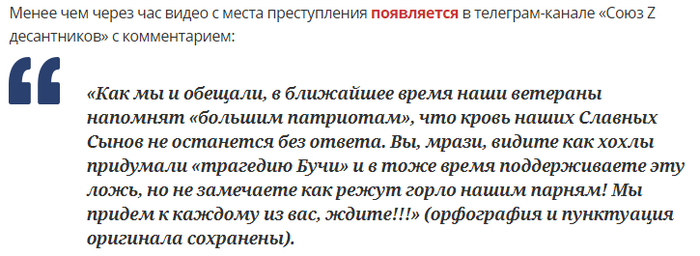 Преступление было совершенно поздним вечером 7 апреля, а уже 12 апреля, была выпущена статья с полным расследованием, нашли всех виновных и "родственником до 7 колена", кто и чем занимался с ясельного возраста, где находятся родинки и спутниковые снимки с 2012 года 3 февраля, как Трифонов жал руку Марковецу.