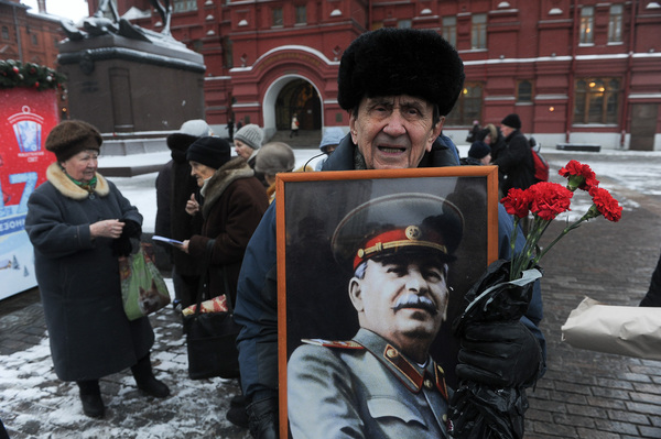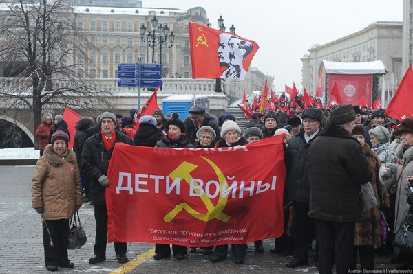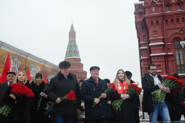 Вообще молодых лиц практически нет. В основном молодежь если и есть то это рекруты КПРФ и соответсвенно их визит на данное мероприятие это своеобразная повинность, ну вот тут девушка достаточно молодая скорей всего по своей воле, как думаете что её заставило прийти сюда с портретом Кобы и цветами? Ещё парень в голубом костюме на заднем фоне.....видите ещё молодежь? Я нет...