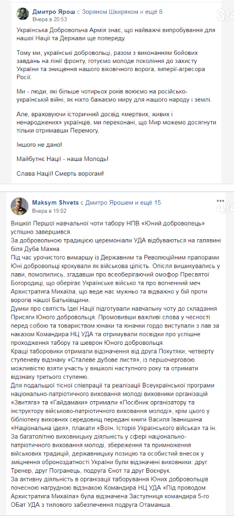 Против снижения возраста также высказываются народные правые экстремисты в волонтерских объединениях, такие как Дмитрий Ярош, командующий Украинской добровольческой армией (УДА), который опасается, что украинцы вымрут, если молодые люди не смогут обеспечить потомство:
