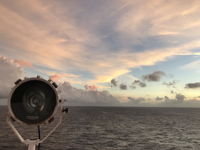 Утро пришло... нас не качало уже черт знает сколько дней... а тут началооось... ну проснулся в 6 утра, то ладно... завтракизарядки, поднялся на мостик, с третьим стоять надо, начал стоять, а мне не очень, он еще задание дал... вбивать овертаймы экипажа... ну не только овертаймы, а вообще рабочие часы за месяц... а мне херовоооо) я на крыло каждые 5-10 минут бегаю отдышаться) тут мастер пришел, говорит: "У меня на палубе, снаружи надстройки, воды много, не могу заниматься, кадет, иди воду убери..." окееееейй... пошел, смёл воду на контейнеры, она так круто падает на них) летит прикольно... возвращаюсь
