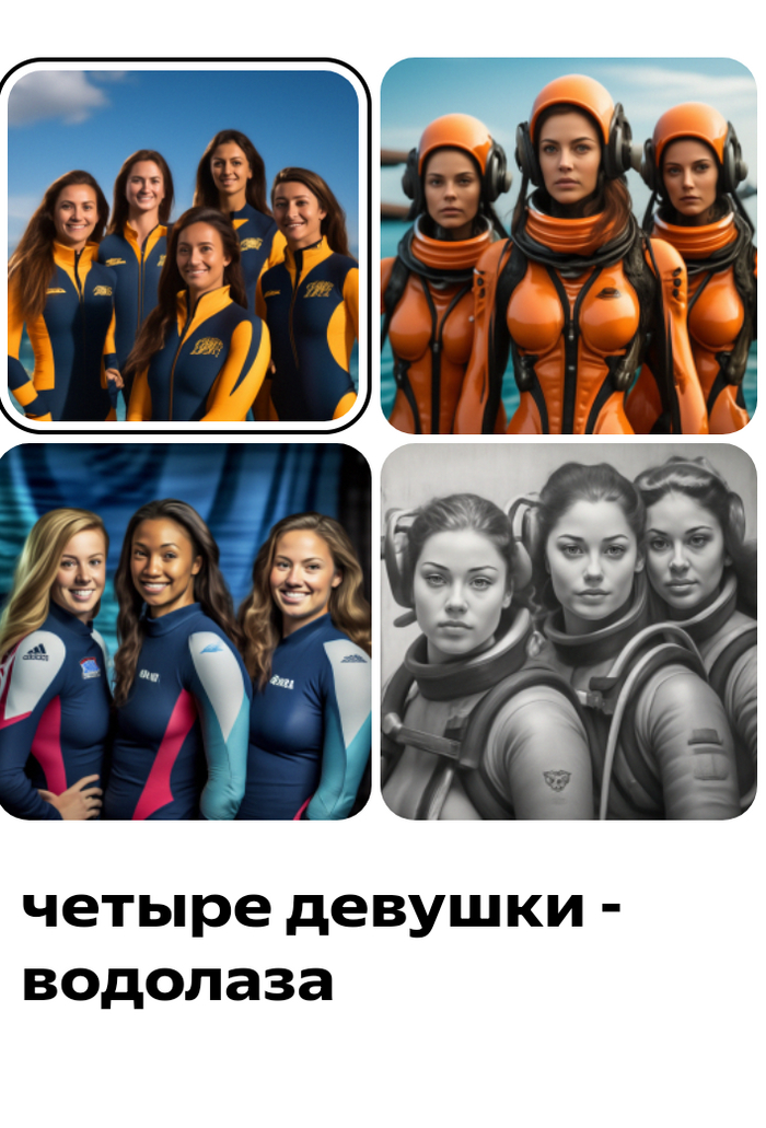 Заебли, чесслово. Вот вам водолазницы. Искусственная интеллектица сделала.