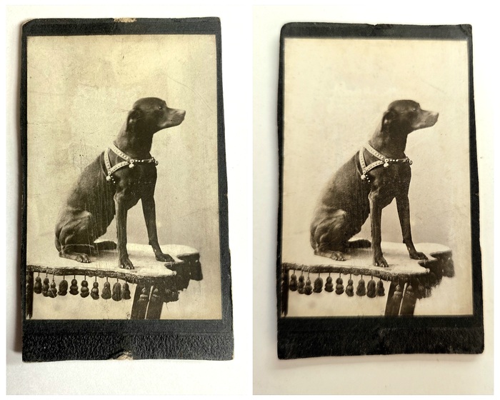 После деликатной поверхностной очистки и тонирования утрат снимки преобразились. Они выглядят ухоженными и завершенными. Исчезли визуальные «шум» и пятна, взгляд теперь свободно скользит по изображению, не спотыкаясь о повреждения. Это тот случай, когда небольшое количество процессов и бережной работы и вернули фотографиям их историческую ценность и эстетическое обаяние, не перекрашивая их историю заново.