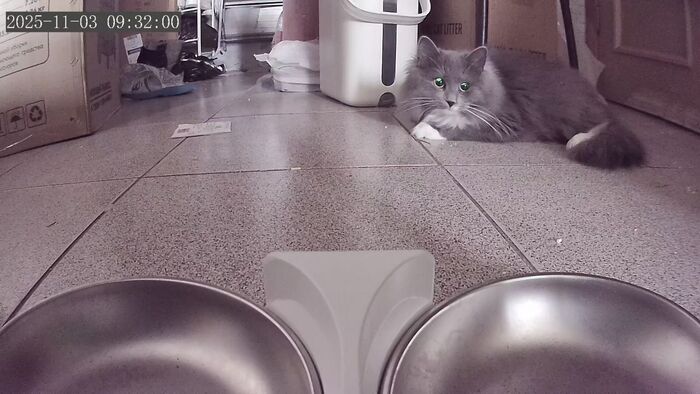 Как я писала ранее, Стеша - пылесос. За раз может съесть двойную дневную порцию взрослой кошки, что регулярно и проворачивает. Вася из-за этого ходит голодная. Заказала автокормушку с двумя мисками. Вчера наконец-то настроила и сегодня наблюдала с работы через камеру как это всё будет работать. Стеша, как представитель молодого поколения, сразу же поняла что и откуда сыпется. Первые два кормления съедала и свою порцию, и порцию Васи вниманием не обделяла. Между кормлениями лежала и пасла кормушку. Вася в этот момент считала ворон и сообразила, что так опять можно остаться голодной, с третьей порции уже на выдачу не опаздывает. Система заработала!