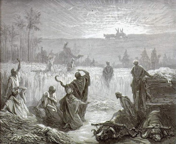 Коровы действительно доставили ковчег на поля еврейских фермеров и остановились там. Израильтяне обрадовались, но их ликование было недолгим, ведь со святыней, чумная телега доставила им отголоски страшной болезни.