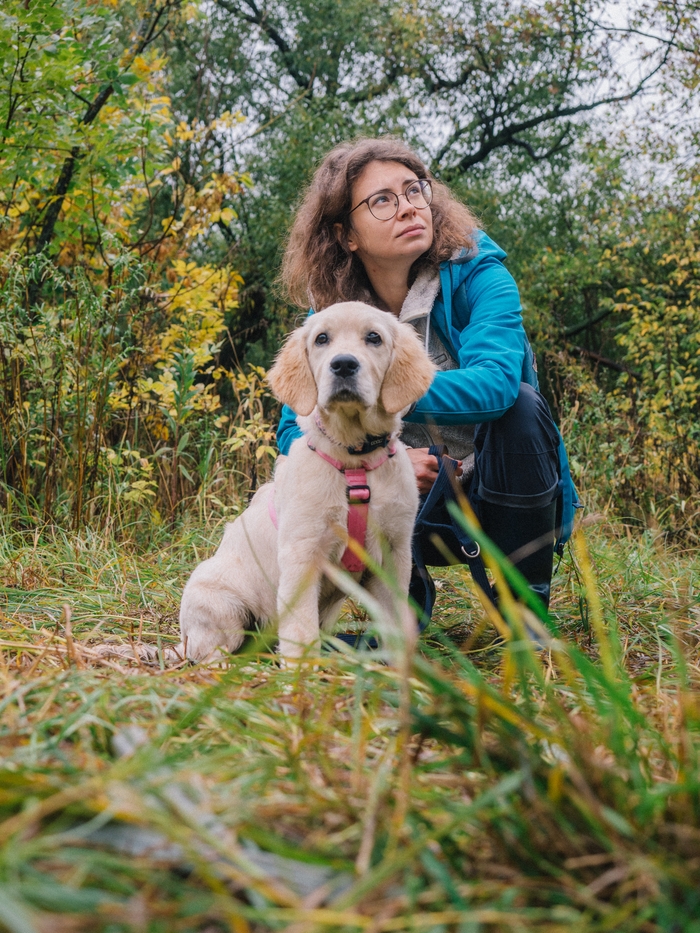 А там кусты непролазные. В итоге она находит как залезть на эту гору и топит вверх. Я за ней. Все это время она лает, поднимаемся в гору и ломится в овраг. Собака четко обозначает человека.