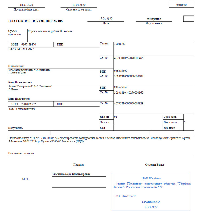 Я перевожу эти средства в фонд, фонд в ответ присылает мне ссылку на пост в соцсетях, где упоминает о том, что взнос совершён, и что он совершён от имени читателей моего блога. Плюс, мне присылают платёжки, которые я тоже вывешиваю в своём блоге.