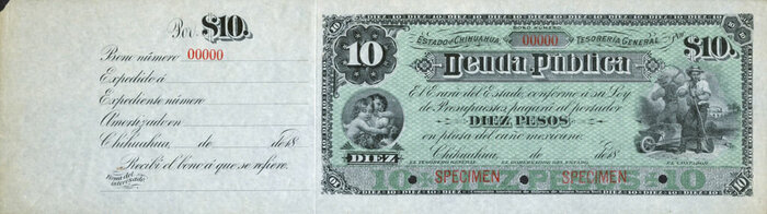 Banco del Estado de Chihuahua. 10 песо. Образец. Лицевая сторона.