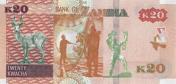 Не уверен, что эта банкнота поступала в оборот. Допускаю, что она так и осталась в стадии проекта. Ну и какая разница - рассмотреть-то можно? Паровоз слева позволяет предположить, что человек с кувалдой и ломом - дорожно-путевой рабочий. Тем более, что пейзаж у него за спиной явно не подземный. Но подпись под банкнотой в интернет-каталоге гласит "Miner" - по-нашему шахтёр. Так что - в коллекцию!