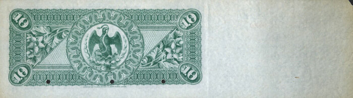 Мексика. 10 песо 1889-1898 гг. Banco Comercial de Chihuahua. Оборотная сторона.