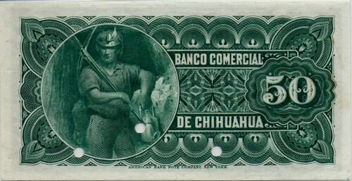 В прошлом посте я начал знакомить вас с банкнотами Мексиканских Соединённых Штатов, на которых изображены сцены шахтёрского труда. Как я уже писал, государственный банк Мексики был создан только в 1925 году, а до этого времени выпускать бумажные деньги имели право многочисленные коммерческие банки, которые в каждом мексиканском штате были свои. По этой причине в один и тот же период времени деньги одного и того же номинала в разных штатах имели разный вид. Вот только заказчики у денег были разные, а изготовитель в большинстве случаев один и тот же - Американская банкнотная компания ("American Bank Note Company, New York"), которая печатала деньги для многих латиноамериканских стран, зачастую используя одно и то же изображение в разных вариациях. Были конечно и другие компании-принтеры, но о них я напишу в следующий раз. В прошлый раз мы знакомились с банкнотами EL BANCO DE HIDALGO, а сегодня познакомимся с банкнотами многочисленных банков штата Чиуауа (так и тянет написать Чихуахуа). Кстати, знаменитая порода собак была выведена именно здесь.