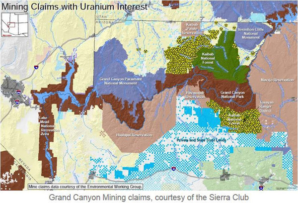И карта с заявками на добычу урана вокруг Гранд Каньона из статьи: