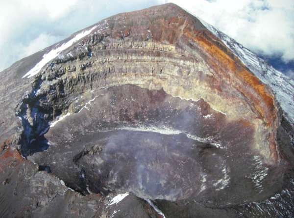 Кстати, на утверждение, что вулканы это горящие терриконы поступила критическое замечание, что терриконы не могут иметь внутри слоистую структуру как на фото: