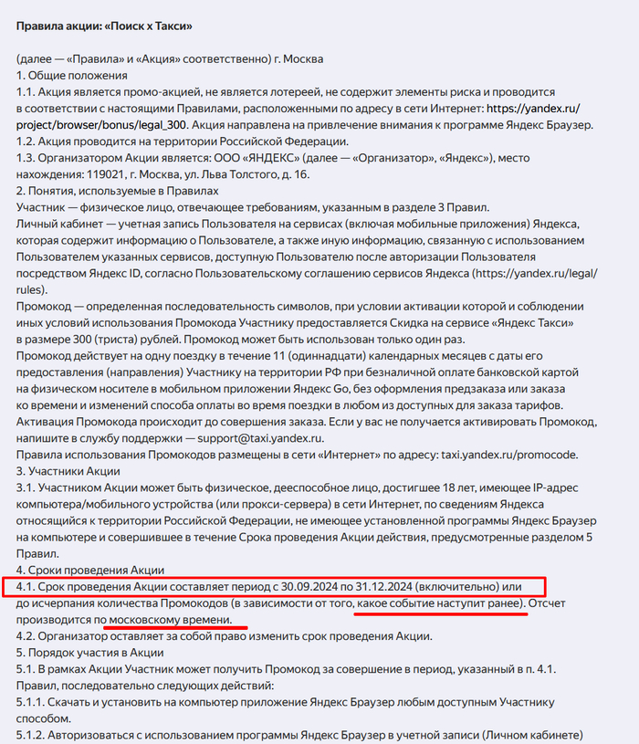 мало того что условия как то странно называются ну да бог с этим названием. Читаем далее ... ааа вот оно что ! сроки акции ... 4 квартал 2024 года. Никогда такого не было .. и вот опять ... кто бы мог подумать .. обман от яндекса в рекламе яндекса . Достойно или Отстойно - решайте сами.