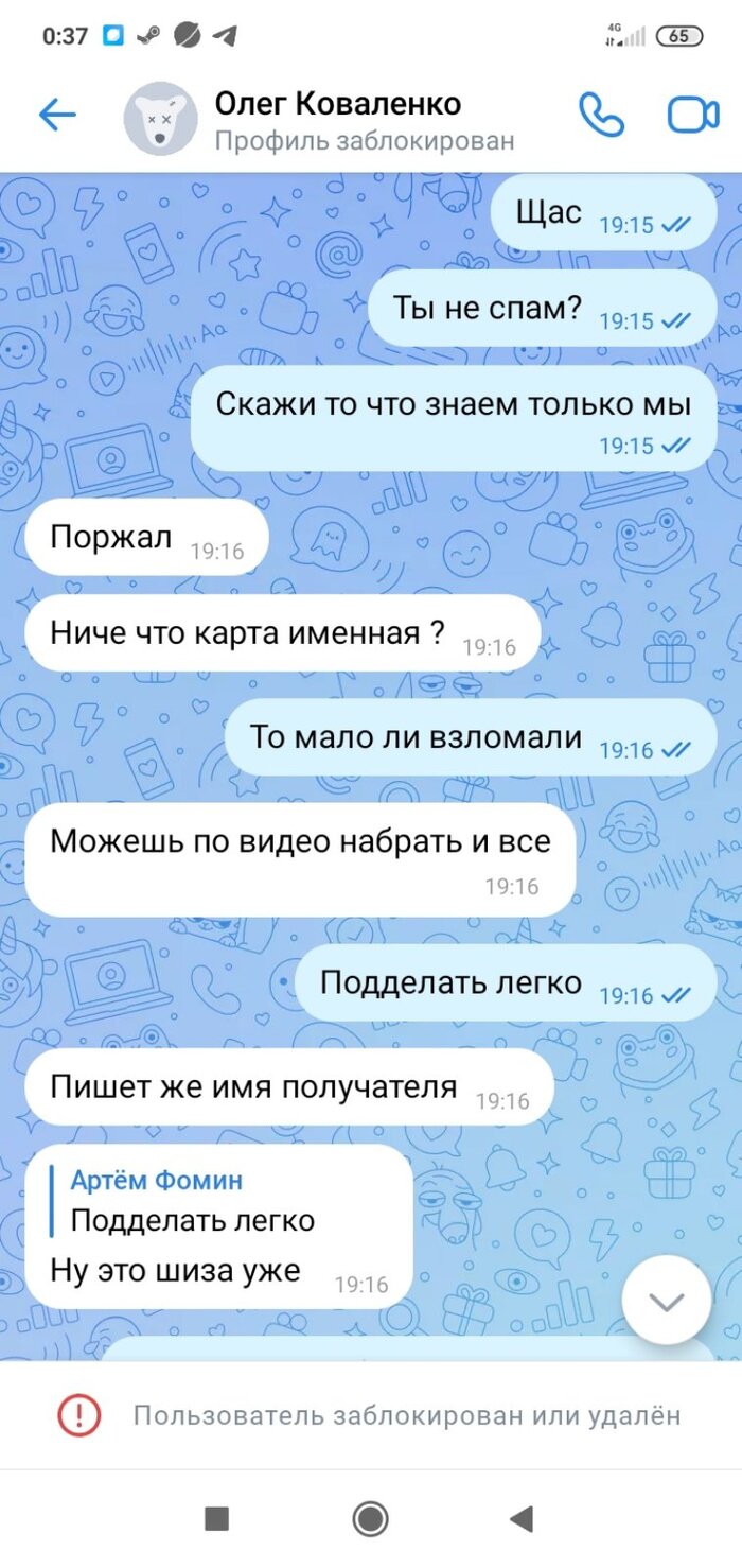 Чтобы все понимали я знаю, что такое кибер безопасность, то есть не перехожу по ссылкам, не сообщаю код из смс, в общем я не долбоеб...