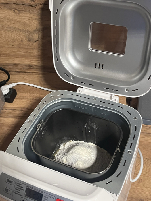 Рецепт простейший. Ничего размешивать не надо, просто положить ингредиенты разом, и выбрать цвет корочки :) дальше оно там само всё месится минут 30. А потом 2,5 часа запекается.