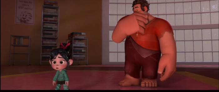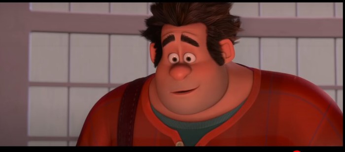 Кадры из мультфильма где здоровяк Ральф(только всё ломающий) для мелкой девченке Ванилопе горе пополам впервые сделал машину на минизаводе и крайне огорчён своей работой, а она наоборот очень рада , прыгает от счастья и говорит, что это мечта!