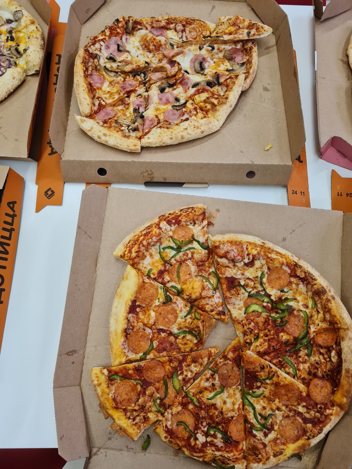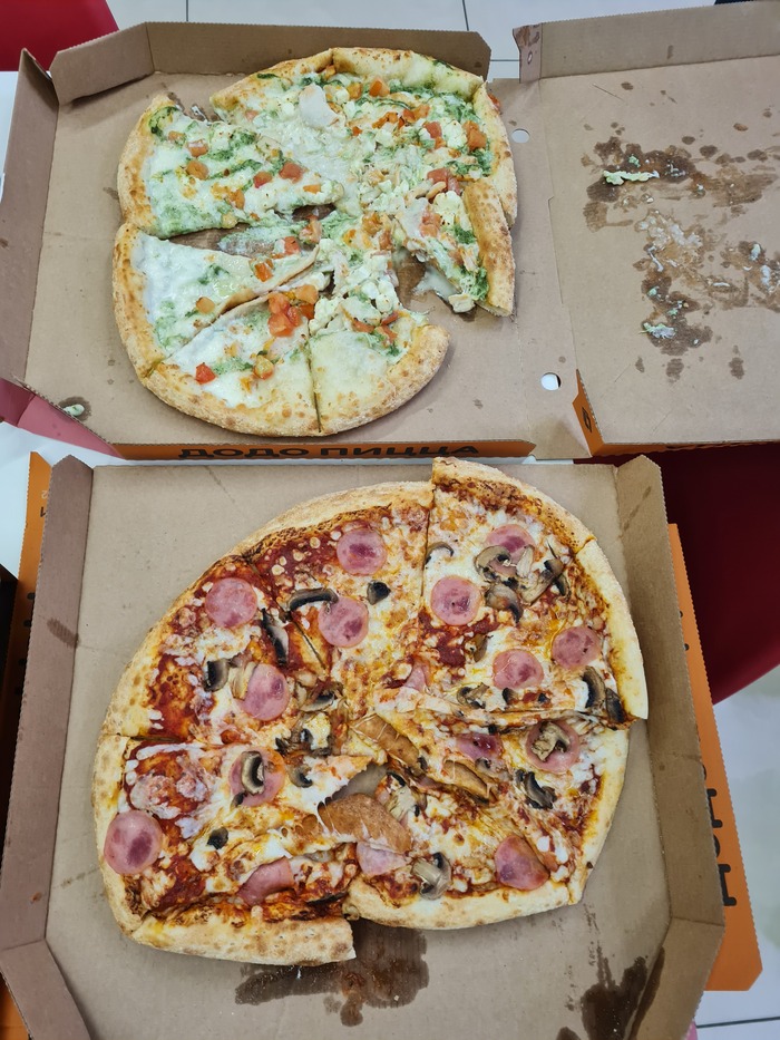 Много лет являюсь едоком додо пицца. Пробовал у них всё, ем в разных городах. Но буквально вчера было заказано три маленьких пиццы. Они были вкусные и красивые, и этого бы поста, не было вовсе, если не одно "НО". Трое человек, я и мои коллеги, траванулись в городе Северодвинск. Всю ночь была диарея и рвота. Мы здесь в командировке и у нас благо праздники выходные, а то мог быть бы срыв заказа. И так не хватает рабочих рук и пытаемся успеть всё к сроку.