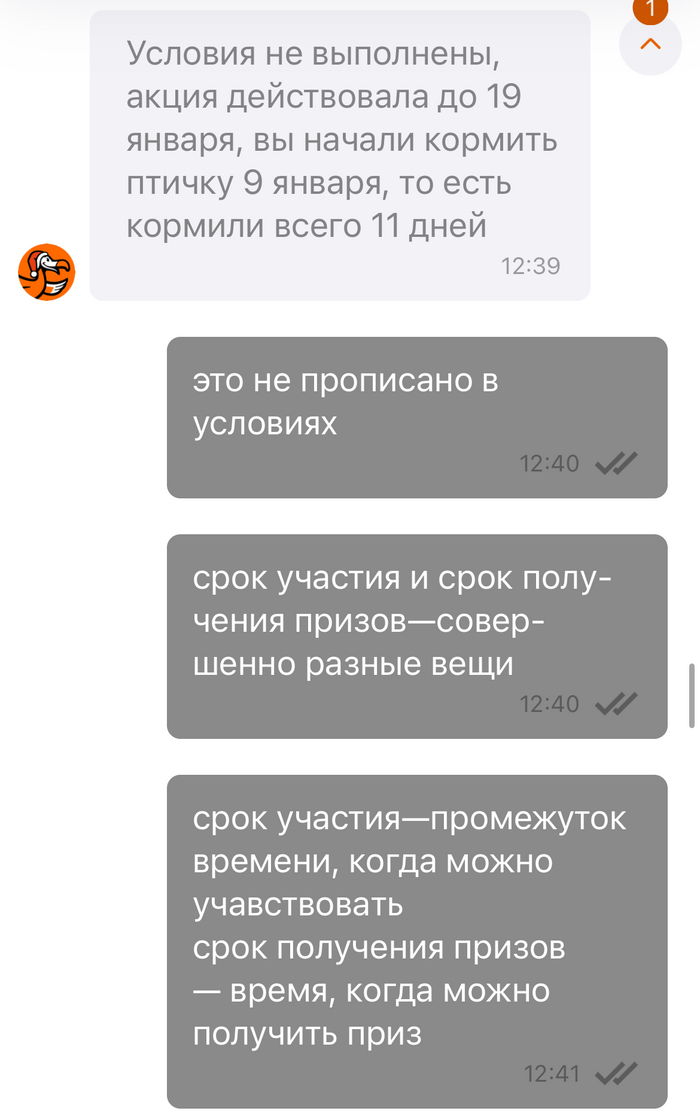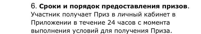 Самое главное, что мне не дают возможности выполнить эти условия. Ведь по их мнению срок окончания акции—срок окончания получения призов, хотя в условиях акции это не прописано.