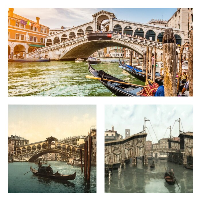Это самый старый мост Венеции, находился в банкирской, а затем рыночной зоне, самой оживленной в городе. Изначально он был деревянным и неоднократно рушился, пока в конце 16 века не был построен каменный мост. В таком виде он и дошел до наших дней. Старый деревянный мост Риальто, а также другие красоты Венеции конца 15 века великолепно воссозданы в игре Assassin's Creed II (кроме Венеции, там ещё и Флоренция).