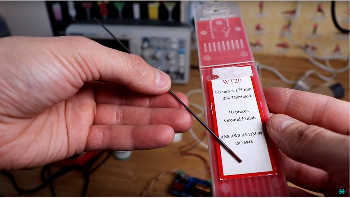 Подобных источников вокруг нас достаточно много, если знать что искать. Это к примеру вольфрамовые электроды с двух процентным добавлением тория-232. Купить их можно в любом магазине торгующем сварочным оборудованием. Для удобства измерения образец поместим в небольшой пластиковый контейнер. Радиоскан с закрытой крышкой гамма фильтра, показывает порядка 30 микрорентген.