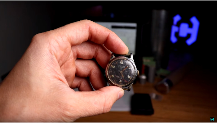 Часы с радиевой светомассой постоянного действия. Этот образец был найден с помощью дозиметра на барахолке, продавец даже не подозревал про существование таких артефактов. Держать такое дома не советую, иначе вам понадобится адвокат.