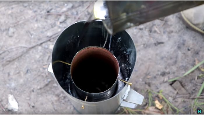 В это время у нас готовится супец из свинца. Тут нужно вовремя снимать пену и прочий шлак, который находится сверху. Чем чище изначальные слитки, тем меньше мусора придется вылавливать. Нагреваем металл с небольшим запасом, и начинаем его поэтапную заливку в вентиляционную трубу. Нижний слой должен быть высотой примерно в 3 сантиметра. Важно заниматься подобными вещами в сухую солнечную погоду, намеки дождя недопустимы, иначе свинец запросто может плюнуть вам в лицо. Усвоили!