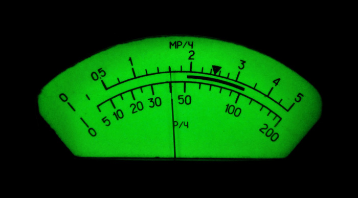 Волнительный момент первого включения. Щёлкаю тумблером и слышу обнадёживающий писк блокинг-генератора. Перевожу прибор в режим калибровки, и стрелка микроамперметра оживает. Устанавливаю её напротив чёрного треугольника на шкале. Прибор готов к работе! Но как получить хоть какие-то показания, если живёшь не в Чернобыле? Диапазон измерений начинается с 0,05 мР/ч (миллирентген в час), тогда как естественный фон составляет около 15 мкР/ч, или 0,0015 мР/ч.