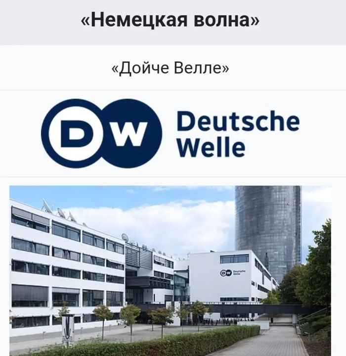 Надо отметить, что DW (Deutsch Welle - Немецкая Волна) - некоммерческое полно-правовое государственное учреждение. Оно осуществляет телевещание, радиовещание и также деятельность в интернете.