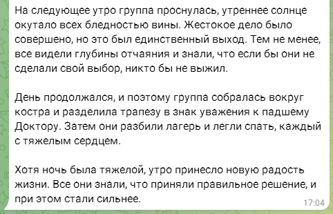 Каждый игрок может назвать только одного выжившего, этот выбор уже изменить нельзя, но можно будет назвать нового персонажа, если выбранный персонаж погиб.
