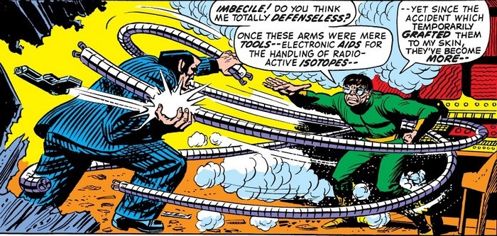 И продолжается она в комиксе Amazing Spider-Man #699. Телу Доктора Осьминога с сознанием Питера Паркера пытаются не дать подохнуть, ибо будь хоть трижды суперзлодей, а есть профессия такая, пациентов на тот свет не пущать. Всё же, упомянувшая о долге спасать людей медсестра плюёт “Доку Оку” в харю. Ну, кое-как стабилизировали, но жить ему всё равно осталось считанные часы. В камере. В супертюрьме на острове, под водой, в окружении суперзлодеев. И тут до Питера доходит: если Отто имеет доступ ко всем его воспоминаниям, может, он может получить доступ к воспоминаниям Отто? А воспоминания преимущественно болезненные. Боль от ударов распускающего руки отца, боль от взрыва, после которого Отто Октавиус стал Доктором Осьминогом, боль от бесконечных ударов Человека-Паука. Может, есть хоть одно приятное воспоминание? Да...для Отто, не для Питера. Потому что это приятное воспоминание – секс с Мэй. Да не с милфой из киновселенной, а со старушкой. А после этого Питер видит, как Осьминогу удалось поменять местами сознания. Питер использовал шлем Отто, чтобы прекратить буйство октоботов несколько подборок назад. А затем использовал его ещё раз во время Паучьего Острова. А затем и вовсе сделал его частью силовой брони при сражении со Зловещей Шестёркой. И при каждом использовании Отто получал свободный доступ к мозгу Питера! Он этим воспользовался, чтобы создать золотистого октобота на удалённом заводе силой мысли, также силой мысли довести его до Нью-Йорка и прицепить на Человека-Паука в момент, когда тот сам себе заблокировал Паучье Чутьё, потому что оно только мешало, сразу после стычки с Хобгоблинами!