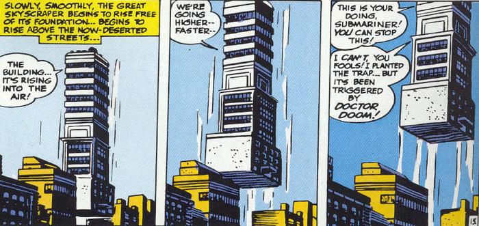 Помните, Нэмор обещал вернуться? Он таки вернулся! В комиксе Fantastic Four #6, вместе с Доктором Думом. Дум хочет уничтожить Четвёрку, а Нэмору это в прошлый раз почти удалось – так почему бы не объединить усилия? Дум обещает не вредить Сью Шторм – и Нэмор соглашается ему помочь. План Дума по уничтожению Четвёрки гениален – зацепить принадлежащий Четвёрке небоскрёб специальным магнитным захватом – и утащить нафиг в космос, и пусть они там скопытятся, например – сгорят на солнце.