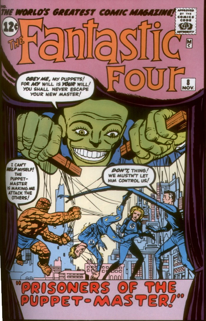 Каждый уважающий себя супергерой рано или поздно должен сразиться с психом, помешанным на марионетках, и Фантастическая Четвёрка – не исключение. Главзлодеем комикса Fantastic Four #8 становится Марионеточник (Puppet Master). Маионеточник испытывает свойства волшебной глины – с её помощью можно контролировать человека, фигурка которого из этой глины слеплена. Марионеточник заставляет человека под властью фигурки спрыгнуть с моста – но его ловит Человек-Факел. Жар от огня Факела передаётся через фигурку Марионеточнику и обжигает ему руки. Этого достаточно для того, чтобы Марионеточник поклялся изничтожить Фантастическую Четвёрку любыми доступными ему способами.