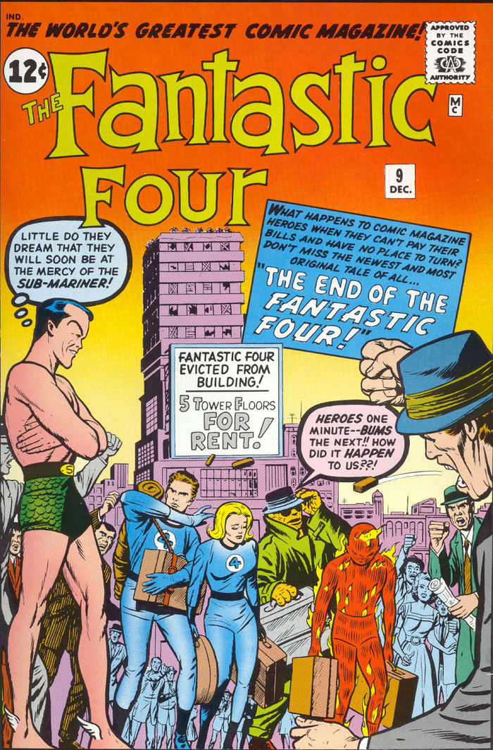 А главным врагом в комиксе Fantastic Four #9 является проблемная экономика…проще говоря, Фантастическая Четвёрка официально объявляет о своём банкротстве и команде заслуженных и горячо любимых народом героев дают пинка под зад из их небоскрёба. У Четвёрки не осталось ни цента за душой – они даже на такси проехаться не могут. Да что там – когда им предлагают сняться в кино в Лос-Анджелесе, чтобы подзаработать, героям приходится добираться туда на попутках. Но в Городе Ангелов Четвёрку ожидает сюрприз, ведь директором кинокомпании, продюсирующей фильм, является не кто иной, как принц Нэмор, повелитель Атлантиды. Он клянётся, что его намерения чисты и он действительно хочет помочь Четырке подзаработать (мог бы просто денег дать, жлобяра аристократичный).