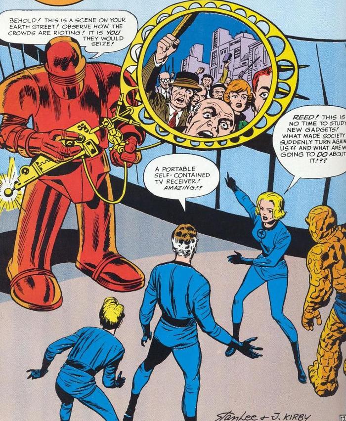 Что-то давно Фантастическую Четвёрку не объявляли врагами народа…комикс Fantastic Four #7 за октябрь 1962 года исправляет это досадное упущение. По сюжету, гаплык угрожает Планете Икс. Один из её жителей, Куррго, решает, что Планету-Икс может спасти только Фантастическая Четвёрка. Но как заставить героев покинуть Землю? Может, договориться с ними и вежливо попросить о помощи? Вряд ли сработает, ведь команда состоит из не в меру умного мудака, каменного Халка с мозгом воробушка, школьника и девицы, чья задача в каждом комиксе – исчезнуть и не отсвечивать. Значит, нужно поступить иначе – отправить на Землю боевого робота, который Лучом Враждебности заставит народ ненавидеть Четвёрку. Когда против тебя весь мир, выбора нет – нужно эвакуироваться на Планету Икс.