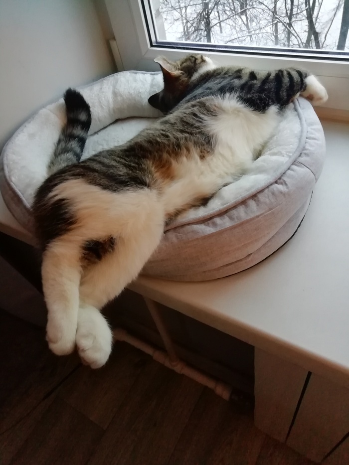 До чего же быстро дворянин ( бывший ) растёт. Буквально пару месяцев назад помещался аккурат в центр матрасика, который ему купили, а сейчас вон как "молоко убежало через край". Пора новый матрас искать.